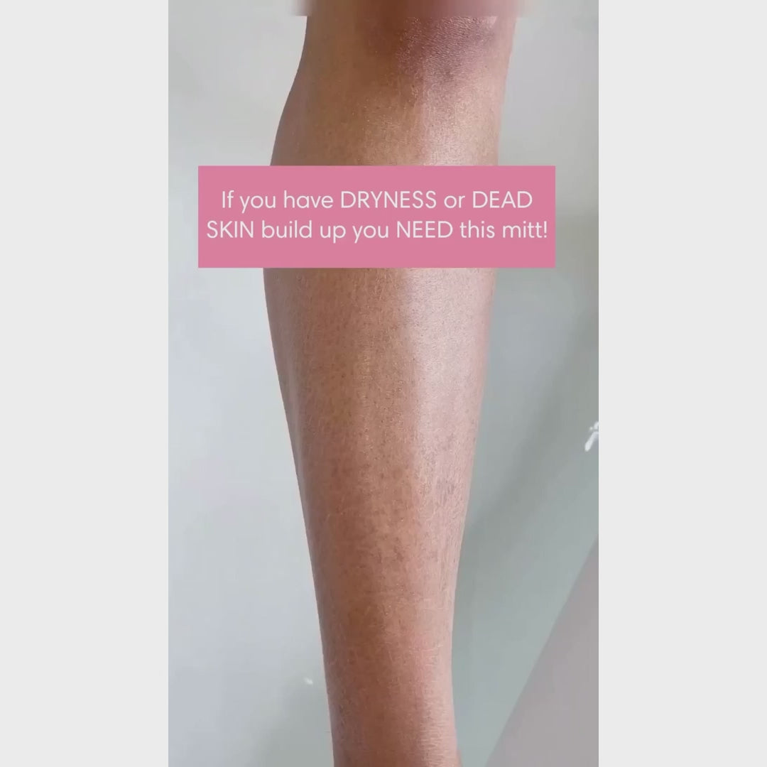 Watch dead skin visibly roll off with every stroke! The glove tackles: